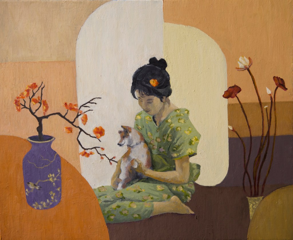 Jeune fille et son chien. 46 X 38 cm. Oil on Canvas.